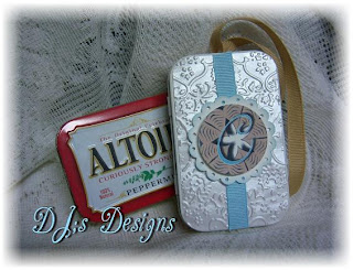 I seen this gift at Creations by Patti and knew I was going to make this as a gift for my friend Amanda for her upcoming wedding..I love to recycle and I have a good supplier for altoid tins now so this was a perfect match for me. Patti has some awesome ideas for wedding items check her blog out and be inspired.. I was..